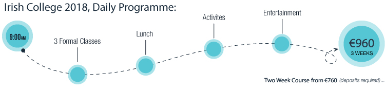 The objective of the college is to give students not only a knowledge of the Irish language but also a knowledge of traditional Irish music and dance. Our aim is to have every student leave with a few steps, maybe a few words of an Irish song and most of all great memories…